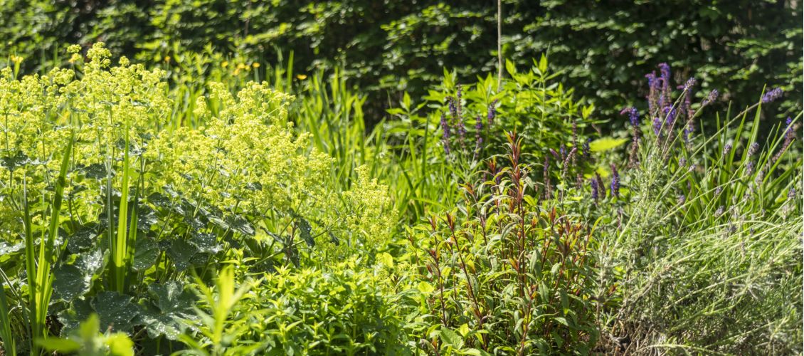 Planten kunnen een goede oplossing zijn als je een warme tuin hebt. Wanneer het regent, blijft bijvoorbeeld een deel van het water op de bladeren liggen. Het verdampen van dit water zorgt voor verkoeling. Ook later zal er verdamping plaatsvinden van het water in de grond bij de planten en van de planten zelf.